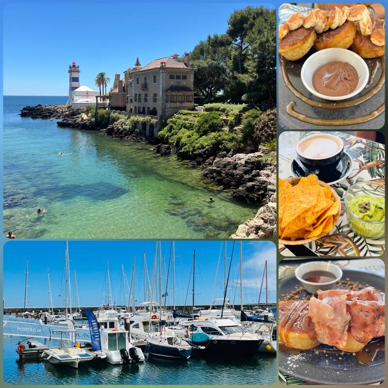 Wir brauchen einen Ruhetag. Pool, Sonne, Chillen. Kein Programm. Am späten Mittag treibt uns ein kleiner Hunger in den Hafen von Cascais, nur 5 Gehminuten entfernt. Wir überqueren eine Brücke, unter der gestern noch kein Wasser war. Es gibt also Ebbe und Flut. Im Hafen finden wir den Cascais-Flair, wie im Reiseführer beschrieben. Wir bestellen Brownies und Pancakes und Schlemmen die Leckereien. Wir sind endlich angekommen. Am Abend gehen wir in eines der zahlreichen Restaurants in der Marina. Wir essen Burger (mit Trüffel und Pilzen, lecker) und Pizza. Und dann fängt es plötzlich und ohne Vorwarnung an mit regnen. Alle Kellner werden etwas hektisch, aber alle Gäste finden indoor Platz. Die Sangria ist noch nicht leer. Ich bestellte eine 1/2 Portion und bekam 1 Liter. Der Rückweg wird lustig. Morgen wollen wir ganz früh nach Lissabon. Einen nächsten Versuch mit der Tram starten.