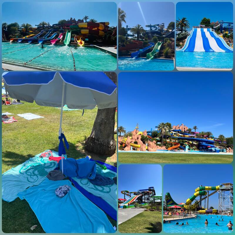 Kira hat die erste Wasserpark-Werbung bereits auf dem Weg von Lissabon nach Vila Nova de Milfontes am Straßenrand entdeckt und den Park im Internet gecheckt. Seither wussten wir, dass wir Erwachsenen an einem Tag im Slide & Splash nicht vorbeikommen werden. Die Wettervorhersage war gut, es sollen 28 Grad werden. So buchen wir online die Tickets und fahren kurz nach 9 Uhr los. 30 Minuten später erreichen wir den schon recht vollen Parkplatz. 10 Uhr ist Parköffnung. Kurz vor der Zeit werden die Tore geöffnet und wir suchen uns, ausgestattet mit unserem Sonnenschirm, ein Plätzchen. Dann gehts direkt los. Bis Mittag wird durchgerutscht. Die Wartezeiten an den Rutschen sind ok, maximal geschätzte 15 Minuten. Es ist warm und der Wind weht nur leicht, und das auch eher warm. Mittags gönnen wir uns 2 Pizzen samt Getränken. Für einen Park sind die Preise absolut fair. Und die Pizzen schmecken wirklich gut. Wir sind positiv überrascht. Auf gehts zur nächsten Rutschenrunde. Es ist voller geworden. Wir stehen bei der Kamikaze-Rutsche länger an. Aber sonst kommen wir gut durch. Vor allem die Reifenrutschen machen mir Spaß. Nur der eine oder andere Anblick der Badegäste ist schon etwas komisch. Röllchen sind ja ok, aber dann bitte vernünftig einpacken. Besonders die jungen Mädels haben hier und da einen wirklich „besonderen“ Geschmack von passender Bademode.