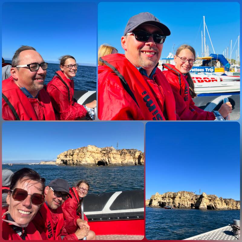 Wir statten dem großen Supermarkt einen Besuch ab und fahren ins Hotel. Auf dem Balkon wird gemütlich gegessen, bevor es nochmal an den Pool geht. Der Wind weht mal wieder stürmisch mit Böen bis 55 km/h. Schirme müssen geschlossen bleiben. Dann gehts eben ins Wasser. Puhhh, ist das frisch. Bis zum Abendessen macht jeder sein eigenes Ding. Danach fahren wir nochmal mit dem Bus nach Lagos rein. Aber es ist trotz Jacke wirklich unangenehm. Wir schlendern noch ein wenig. Zum Abschluss setzen wir uns auf ein Getränk in eine Bar. Im Hintergrund singen und tanzen Straßenkünstler. Wir würfeln etwas und fahren mit dem Bus zurück.