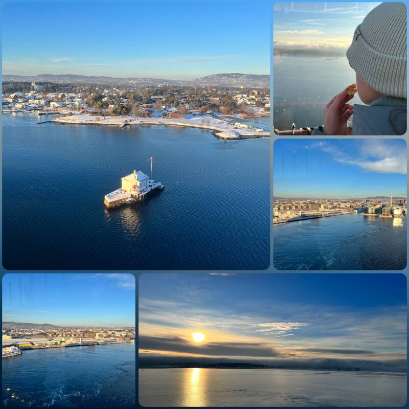 um 13 Uhr ertönt Sail away an den Lautsprechern der Außendecks. Wir legen ab und genießen den tollen Anblick. Der Hafen wird immer kleiner und so befahren wir den Oslofjord.