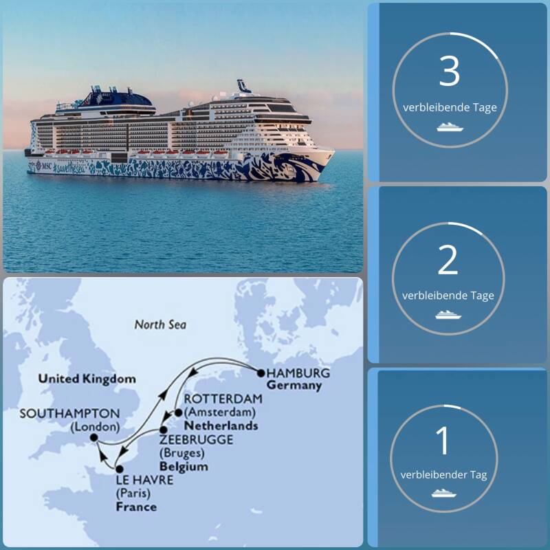 Doch kurzfristig ergab sich ein Angebot mit einem Schiff. Die MSC Euribia, welche ab Hamburg die Häfen Rotterdam, Zeebrügge, Le Havre und Southampton ansteuert, bot für unter 500 Euro pro Erwachsenen eine Woche Kreuzfahrt inklusive Vollpension und Unterhaltungsprogramm in der Innenkabine an. Kinder und Jugendliche reisen kostenfrei, bzw zahlen nur eine minimale Servicegebühr. Für einen schmalen Taler Aufpreis buchten wir uns eine Balkonkabine und so stehen wir kurz vor 5 Uhr an einem Sonntag am Zwickauer Hauptbahnhof. Wir fahren wieder mit dem Zug. Umsteigen in Leipzig und dann direkt mit dem ICE über Berlin bis Hamburg. Unser Check-in ist für 12 Uhr vorgesehen. Wir sind gespannt, ob alles pünktlich funktioniert und vor allem, ob der Check am Cruise Terminal Steinwerder wieder so lange benötigt, wie zu Weihnachten bei AIDA.