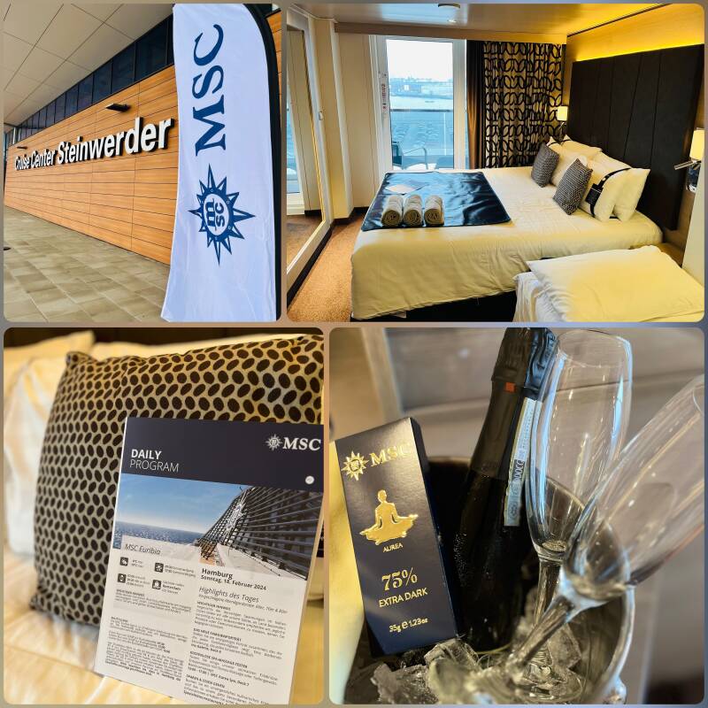 Ein Koffer steht bereits vor der Tür. Prosecco ist kaltgestellt und dunkle Schokolade wartet darauf verputzt zu werden. Wir haben eine Aurea-Balkonkabine gebucht. Das ermöglicht uns am Abend zu unserer selbst gewünschten Zeit essen zu gehen. Bei MSC gibt es abends überwiegend Menü zu festgelegten Essenszeiten. Wir mögen da gern etwas Freiheit, daher wählten wir diese Buchungsklasse.