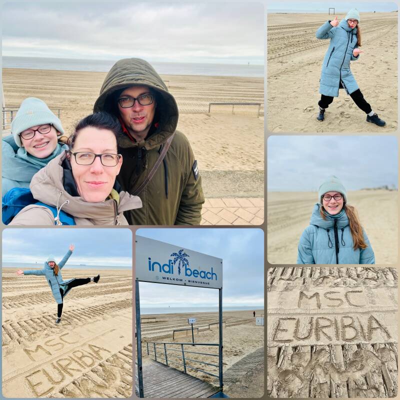 Da wir den Hafen von Le Havre aufgrund des Hafenstreiks nicht anfahren konnten, sind wir noch immer in Zeebrügge. Gestern erlebten wir einen tollen Tag in Brügge, heute wollen wir in der Umgebung nur etwas Bummeln gehen. Der Ort Knokke liegt gleich nebenan und ist bequem mit der Tram erreichbar. An der Endstation steigen wir aus und laufen entlang der über 1 km langen Einkaufs- und Restaurantmeile bis hin zum Strand. Überall finden wir kleine Boutiquen und nette Cafés. Die Stadt scheint wohlhabend, denn wir erblicken einen Porsche nach dem anderen. In den Restaurants Speisen gut betuchte Senioren. Was hier wohl im Sommer los ist, wenn der wunderschöne breite Sandstrand die Leute anlockt.