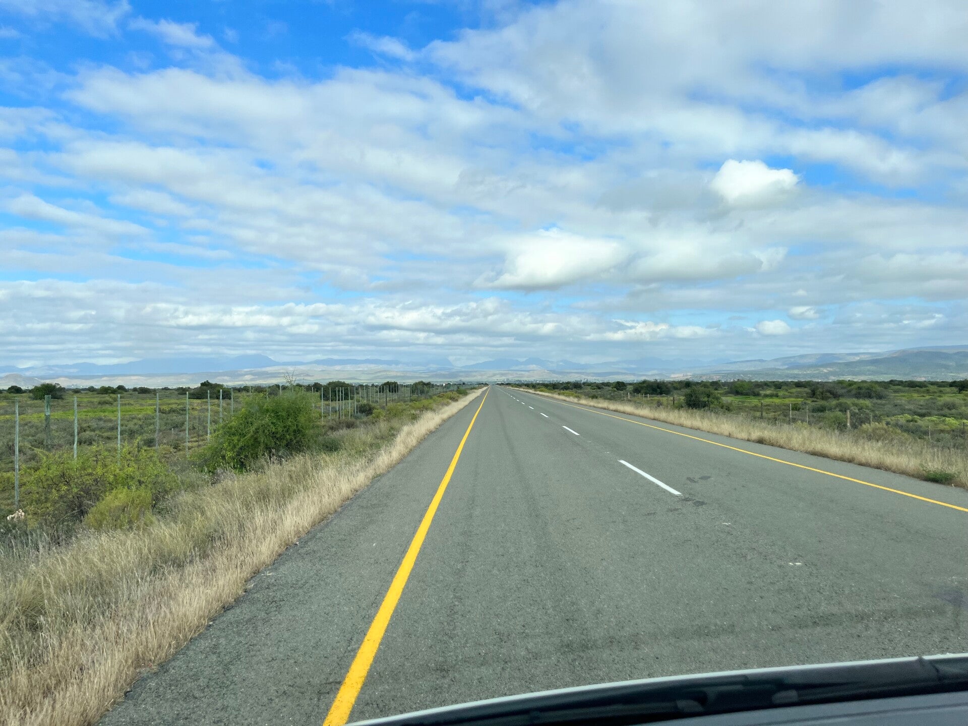 Nach einem gemütlichen Frühstück mit Kaminfeuer im Hintergrund starten wir in Richtung Oudtshoorn. Der erste Stopp ist direkt an der nächsten Tankstelle. 2 Tankwarte putzen alle unsere Fenster und füllen den Tank auf. Freundlich werden wir gefragt, ob wir noch zur Toilette möchten oder man uns etwas zu trinken oder zu essen bringen kann. Wir sagen nein, freuen uns aber über den tollen Service und bedanken uns mit ein paar Rand für die Freundlichkeit.