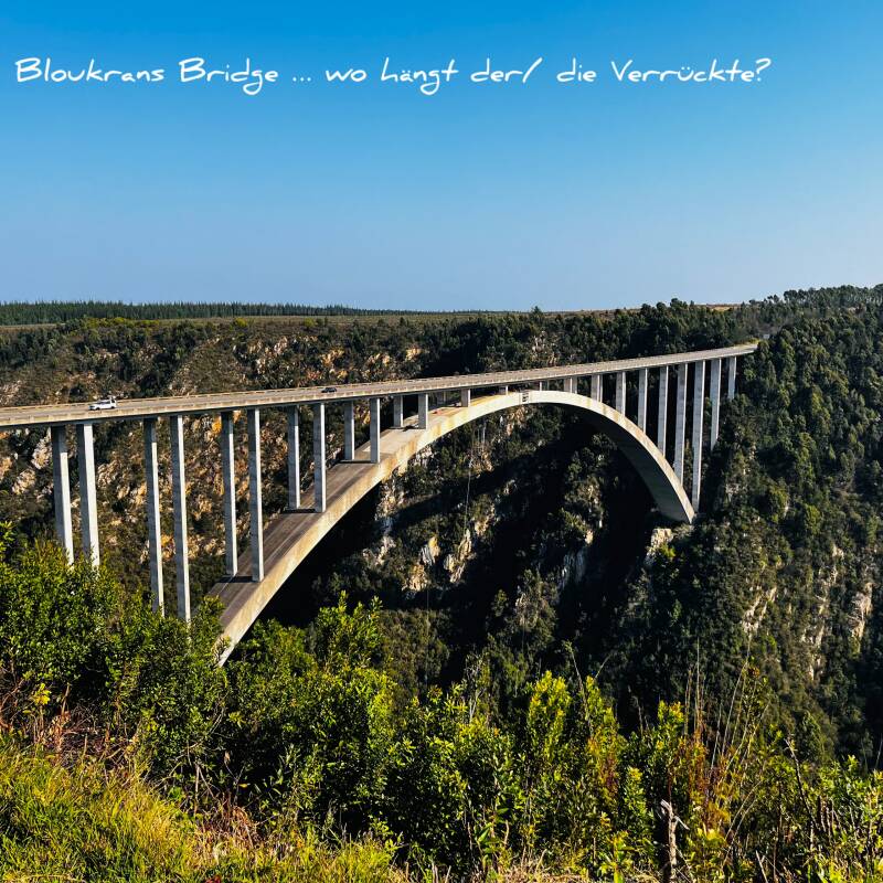 Wir fahren weiter und stoppen an der 1984 eröffneten Bloukrans Bridge. Mit 216 m Höhe ist es die höchste Brücke Afrikas. Das lockt Bungee Jumper an.