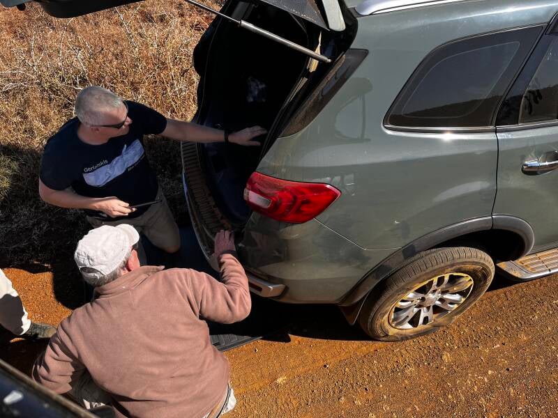 Wir schwingen uns wieder in unsere Sitze. Weiter gehts. Wenig später erspähen wir zwei Nashörner. Ohne Horn. Das wurde ihnen abgenommen, damit sie nicht gejagt werden.