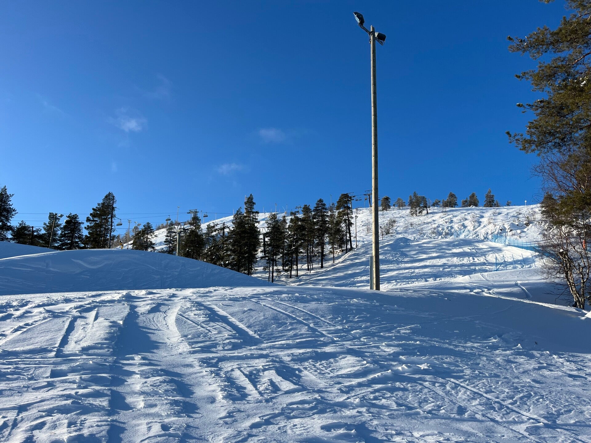Tag 3 in Finnland: heute zog es Kira direkt morgens auf die Skipiste, welche direkt vor und hinter unserem Appartement entlang verläuft. Sie startet mit grüner Piste (wir wussten gar nicht, dass es so etwas gibt). Schnell wurde diese langweilig, so dass das Fahrgebiet ausgeweitet wurde. Allerdings war es heute ordentlich windig und die großen Sessellifte fuhren nicht. So quälte sich alles mit Schleppliften und 3er Sessellift.