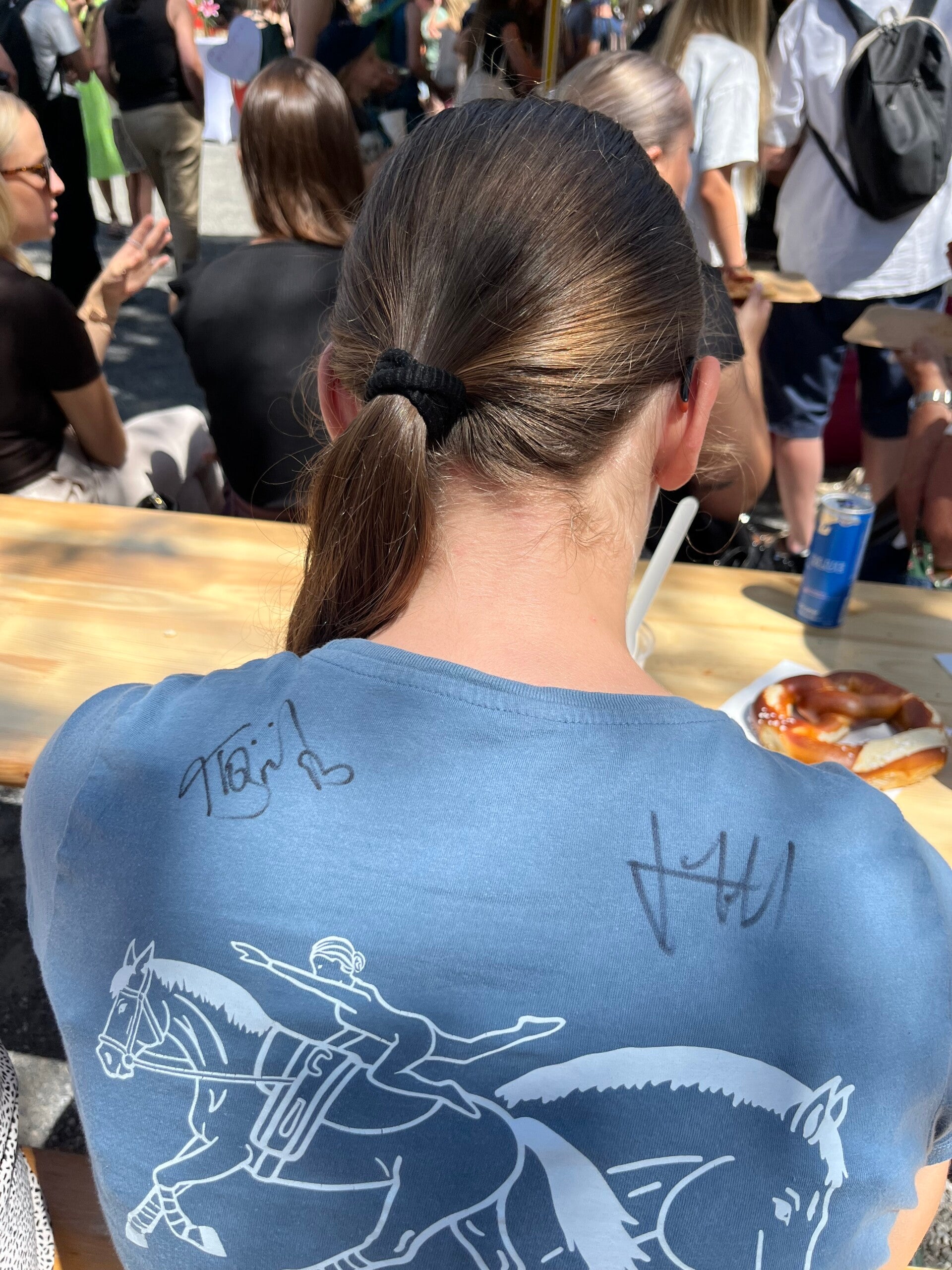 Die ersten beiden CHIO Tage liegen hinter uns. Wir durften die weltweit besten Voltigierer in Aachen bestaunen. Ab und an blieb die Atmung bei uns aus, weil es einfach so fantastisch, aber auch gefährlich aussah. Gerade bei den Gruppen, wo teilweise 3 Voltis gleichzeitig auf dem Pferd sind und Kunststücke zeigen. Aber auch die Einzel und Doppel waren toll anzuschauen. In der Pause ergattert Kira sogar ein paar Autogramme, z.B. von Thomas Brüsewitz und Jannik Heiland, die nun ihr T-Shirt zieren. In der Halle wurde es zunehmend wärmer und wir fragen uns, wie wir die kommenden Tage überstehen sollen.