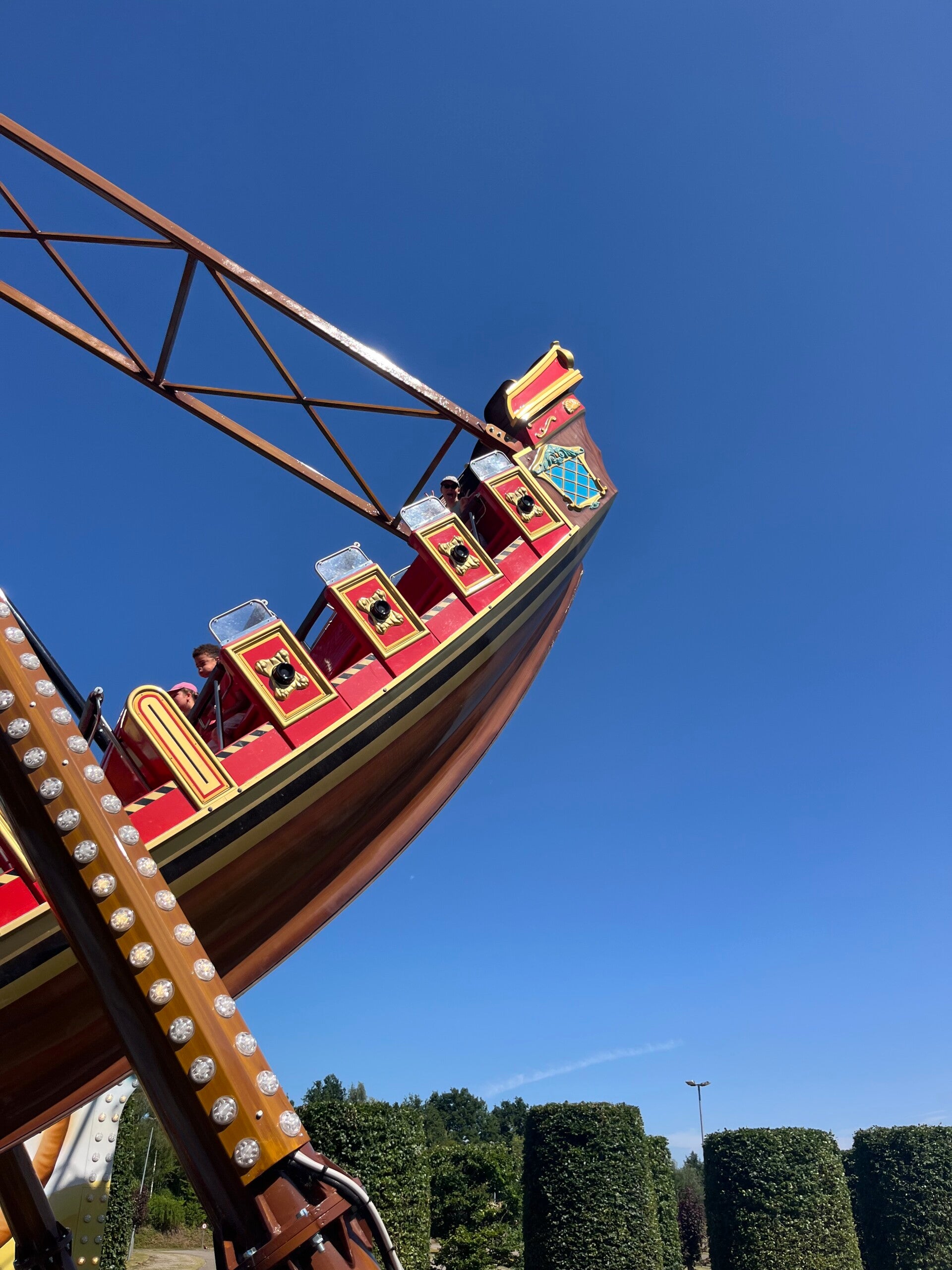Der Park ist leergefegt. Nur ein paar Kindergarten- und Grundschulgruppen sind da. Nirgends müssen wir anstehen. Am Ende wartet sogar ein kleiner Wasserpark mit Wasserrutschen auf die Kids. Kira probiert sich durch, ich kühle nur die Beine ab.