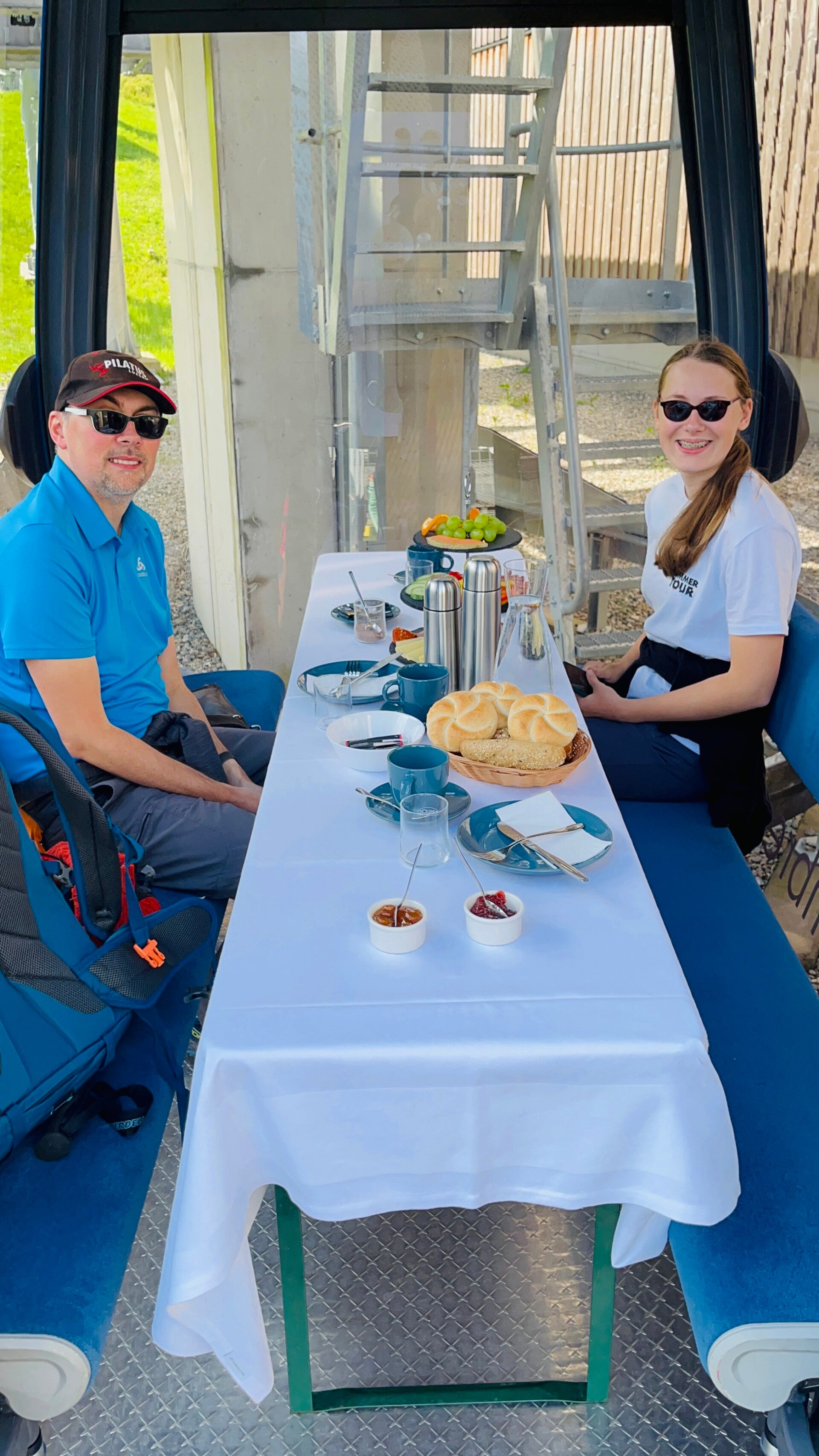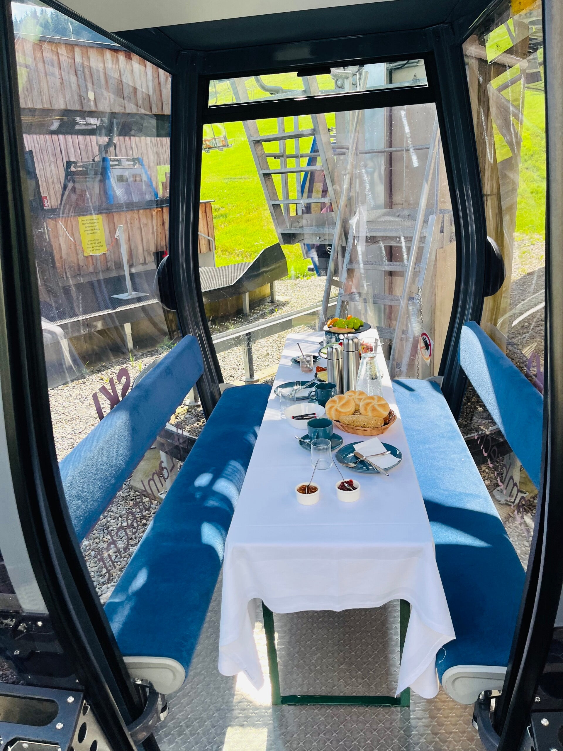 Mein Geburtstags-Frühstück haben wir nach St. Lambrecht verlegt. Nach 40 Autofahrminuten sind wir an der Bergbahn angekommen, mit der es dann natürlich nach oben ging. Dabei konnten wir nicht nur die Aussicht, sondern auch ein Frühstück in der Gondel erleben. Wir hätten Runde um Runde fahren können, aber nach einer knappen Stunde sind wir ausgestiegen. Wir wanderten weiter hoch zum Gipfelkreuz. Teilweise ein steiler Anstieg. Wenn man dann oben ist, sind die Mühen aber schnell vergessen. Auf dem Weg nach unten machten wir einen Stopp mitten auf der Almwiese. Wir legten uns auf unsere Handtücher und schauten den Wolken beim Weiterziehen zu. Schmetterlinge (und andere Krabbeltierchen) fühlten sich sichtlich wohl bei uns. Irgendwann ging es dann weiter in Richtung Grebenzen Schutzhaus, wo eine Erfrischung auf uns wartete.