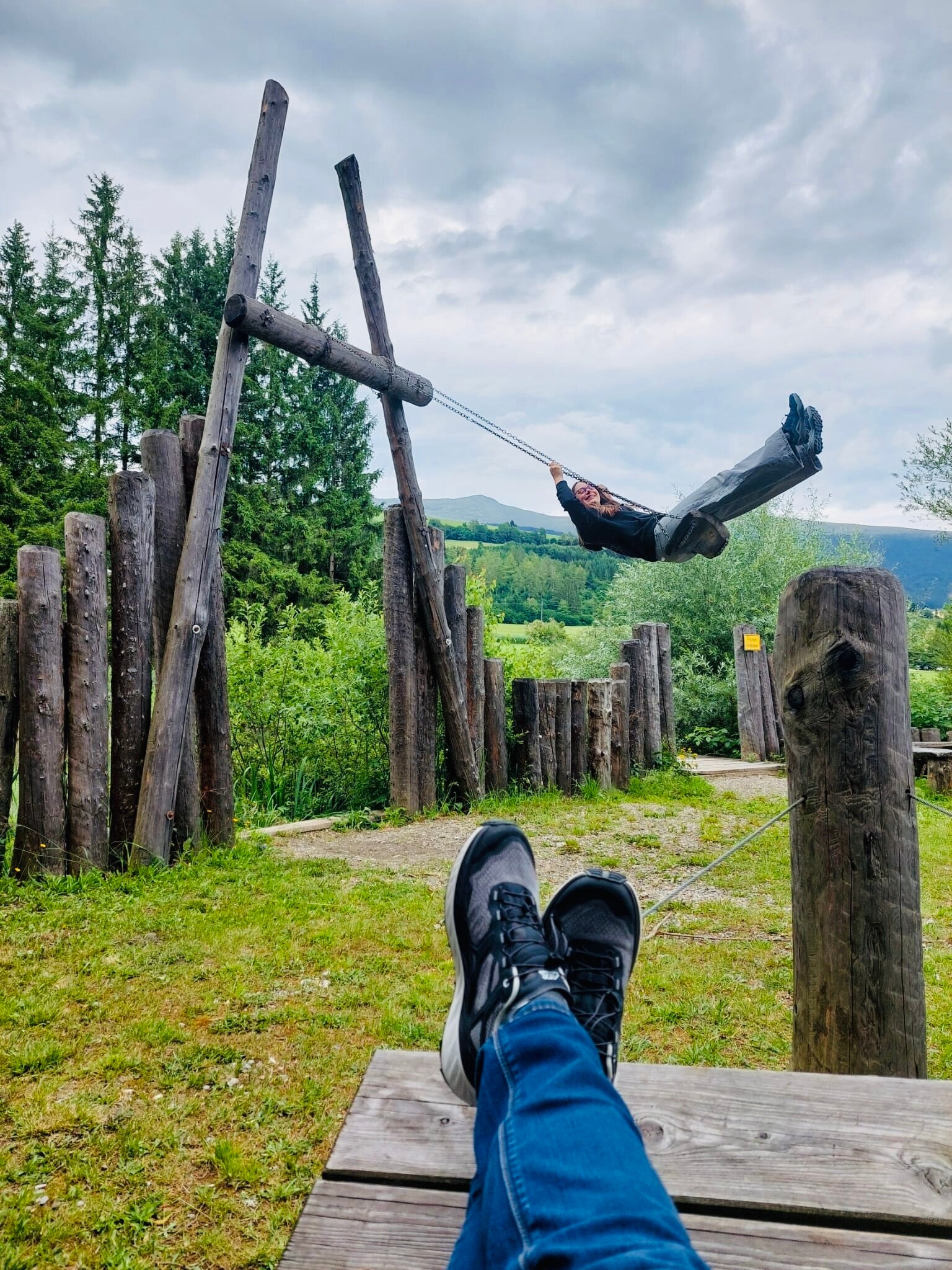 Ein kleines Mittagessen genossen wir am Mühlener Badesee. Für mich gab es ein leckeres Käsebrot. Mario gönnte sich eine Schnittlauchschnitte und Kira ein Käse Schinken Toast. Glücklich und zufrieden spazierten wir um den See und nahmen zwischendurch auf den Schaukeln eine Auszeit.