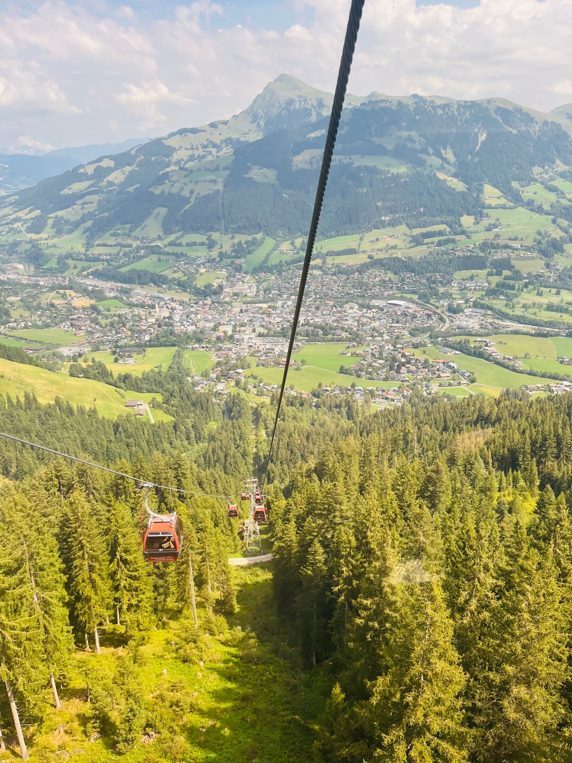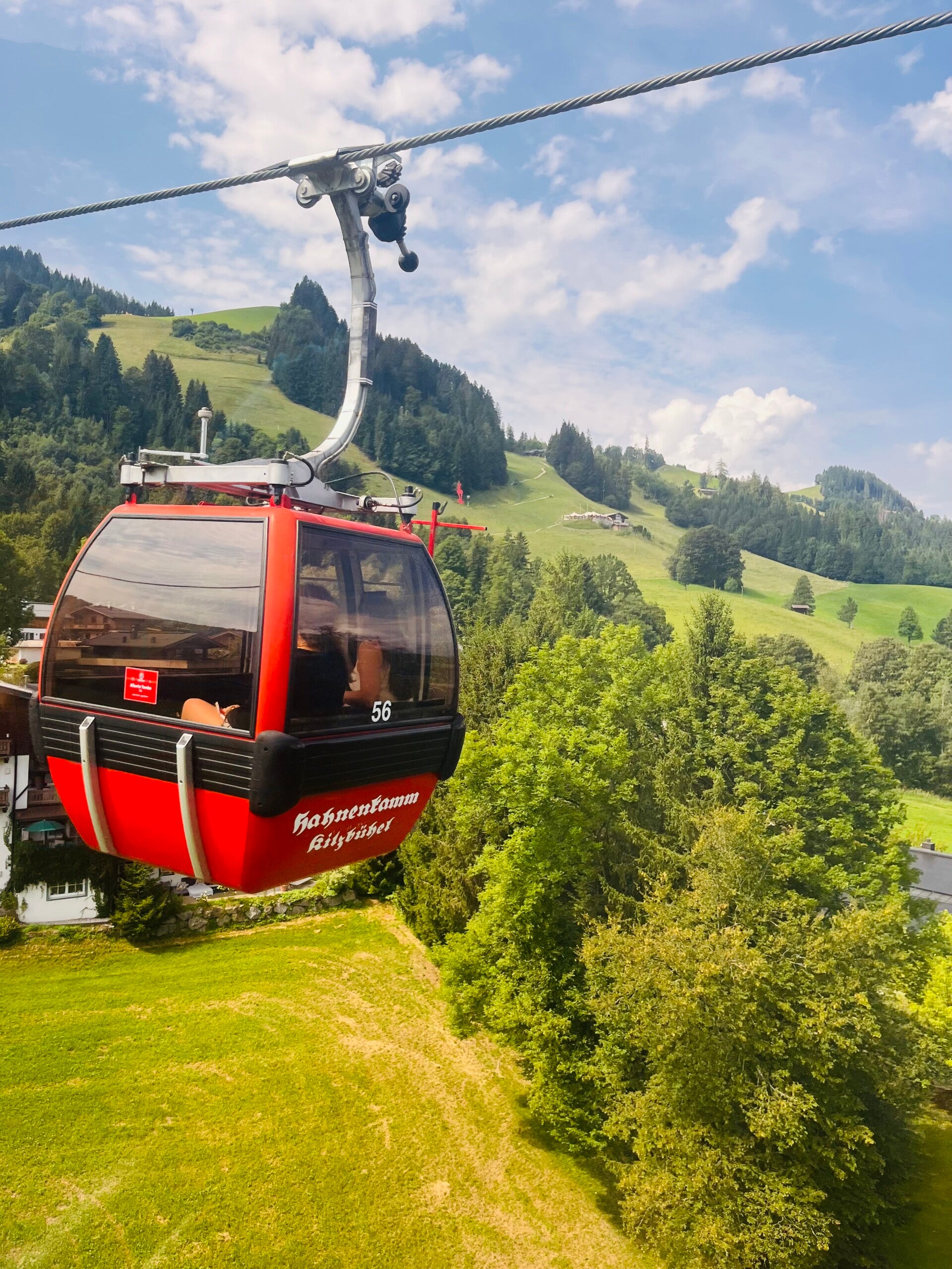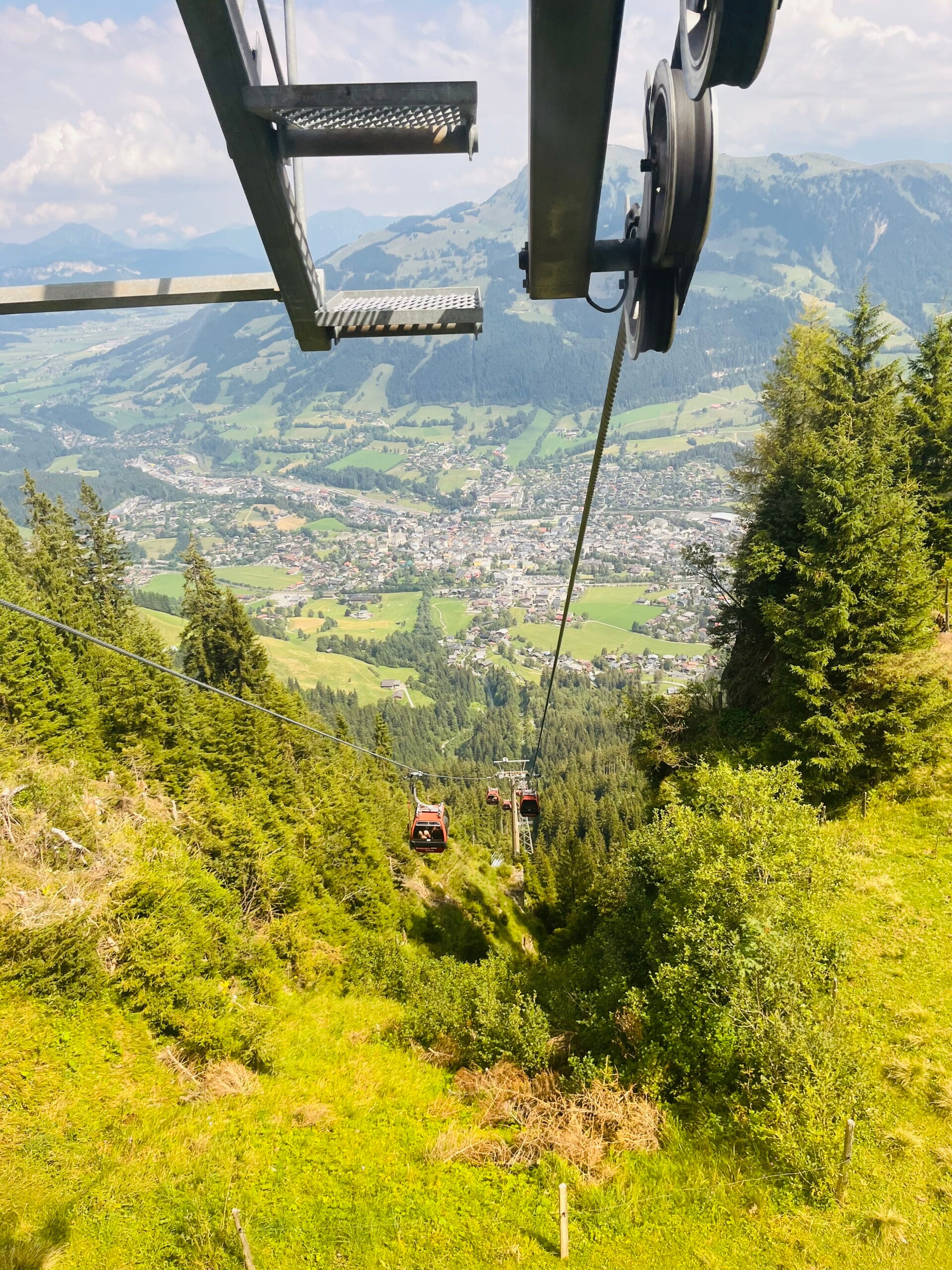 Mit der nostalgischen 6-er Bahn geht’s hinunter nach Kitzbühel. Dort haben wir die Idee hoch zur Rosi auf die Alm zu fahren, aber die Zeit ist schon fortgeschritten und so vertagen wir dieses Projekt auf den nächsten Tag.
