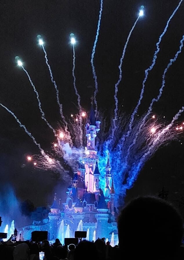 Der Tag wird lang. Bereits vor 8 Uhr sitzen wir in der Metro und steigen später in einen Zug um. Dieser ist 2 stöckig und total voll. Aber es nützt nichts. Alle irgendwie rein und bis zur Endstation fahren. Nach der Sicherheitskontrolle und dem Auffinden einer Toilette (was wir quasi jeden Tag mehrfach machten 🙃) genossen wir den Tag im Disneylandland Paris. Achterbahnen, Paraden, usw. Irgendwann wechselten wir auch in den anderen Park, die Disney Studios. Der Tag verging und es wurde dunkel. Zeit zum Essen. Pizza in Mausform, Pasta, Salat. War gar nicht mal schlecht.
