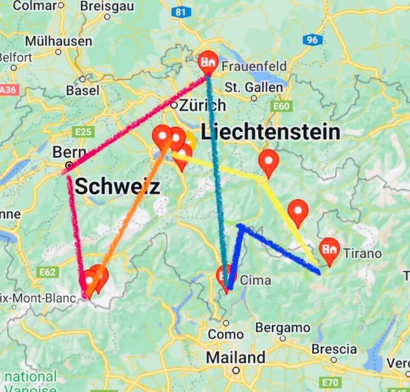 Unsere Reise führte uns nach Zermatt/ Matterhorn, an den Vierwaldstätter See mit Besuch von Luzern, auf die Rigi und den Pilatus. Weiter ging es über Chur nach St. Moritz und mit dem Bernina Express bis nach Tirano. Den Abschluss machte der Luganersee. Mit dem Gotthard Panorama Express ging es von Lugano für einen Tagestrip wieder zurück an den Vierwaldstätter See über Fluelen bis nach Luzern. Die letzte Woche chillten wir am See :-).