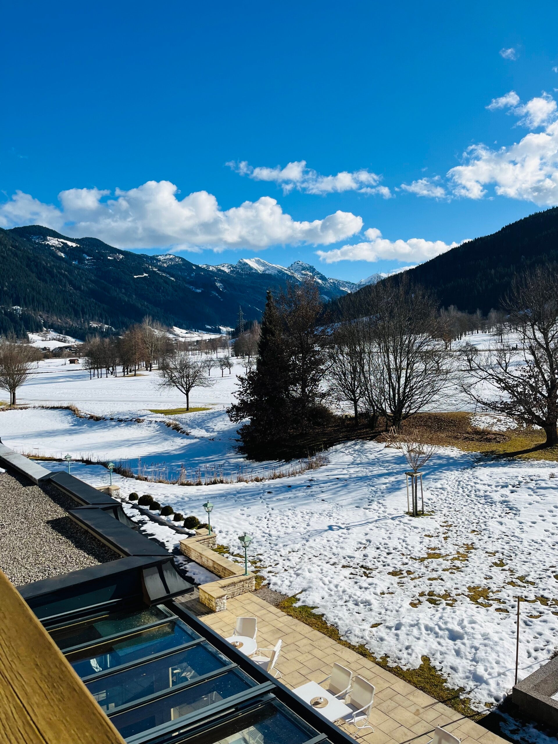 Weiter geht es nun bis nach Radstadt. Zum fünften Mal seit 2020. Kein anderes Hotel auf der Welt hat es bislang geschafft, dass wir so oft für 1 Woche bleiben. Auch wenn wir 2 Winter pausiert haben, so fühlt es sich wie nach Hause kommen an. Ruhe, Eleganz, chic. Die Chefin begrüßt uns persönlich. In dieser Woche sind in Deutschland nur in 2 Bundesländern Ferien, die Auslastung ist entspannt und daher werden wir mit einem Upgrade überrascht. Kira bekommt ihr eigenes Zimmer mit direkten Blick auf den Dachstein und den Reitstall. Wir bekommen eine Suite mit frei stehender Badewanne und Blick auf die Tauern und den Skihang. Wow.
