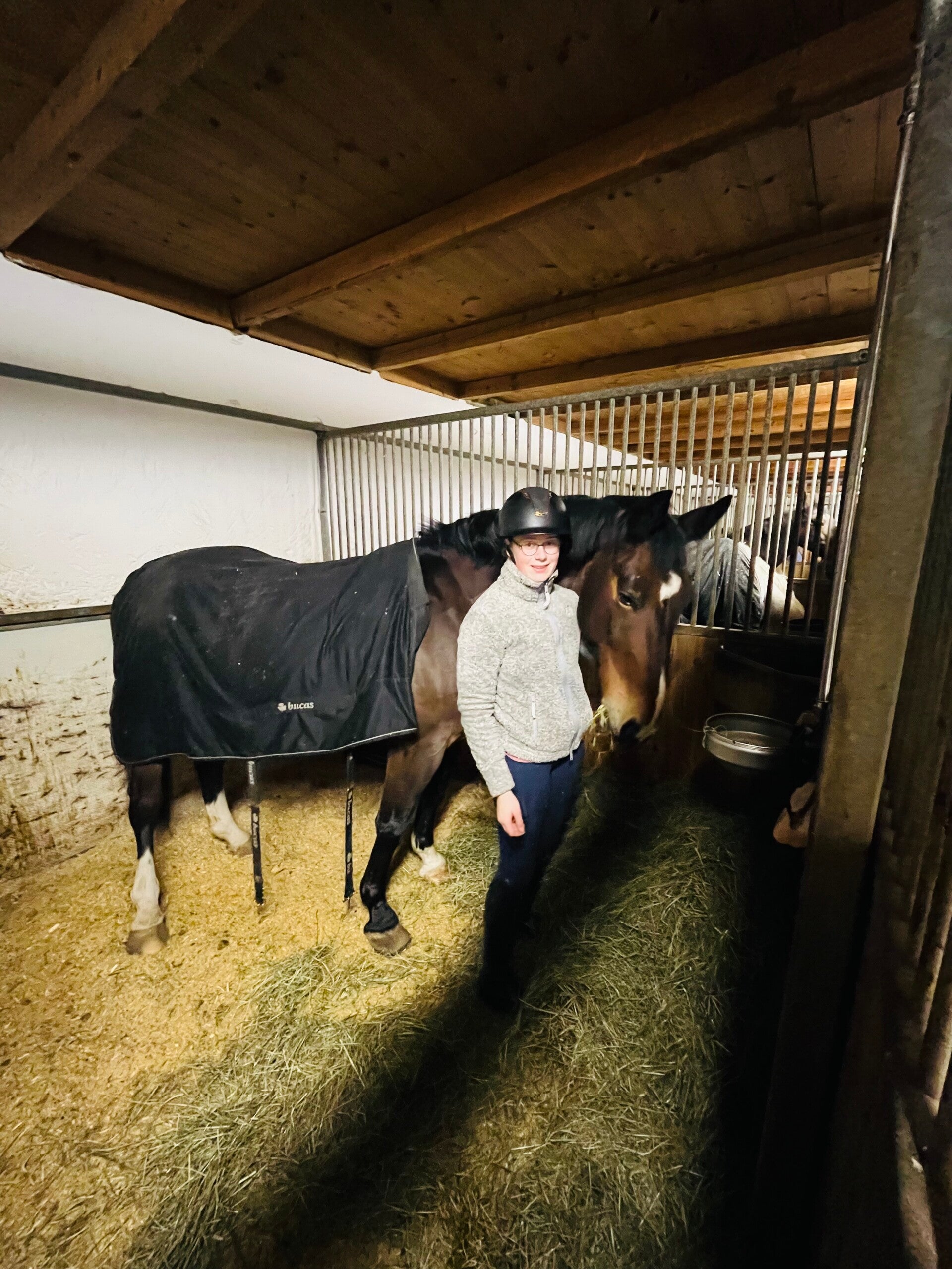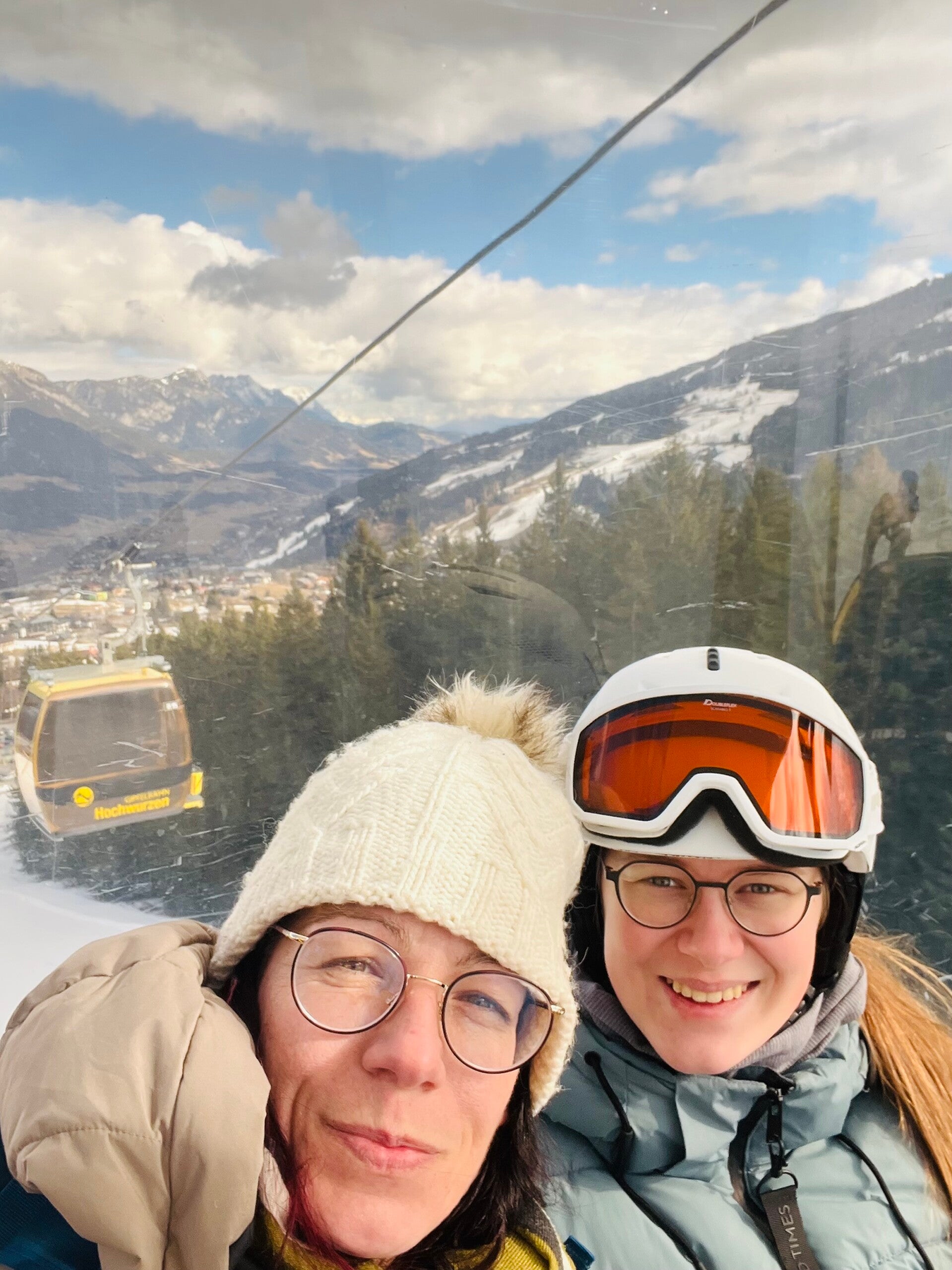 Heute geht’s nach Schladming zur Hochwurzen. Die Temperaturen liegen bei 6 Grad und die Sonne scheint. Wir fahren mit der Gipfelbahn Hochwurzen und den Schlitten nach ganz oben und genießen erstmal den tollen Ausblick. Dann geht’s los. 7 km ist die Bahn lang. Es werden lange 7 km, denn der Zustand der Bahn ist durch die Plusgrade grenzwertig und die Schlitten machen auch, was sie wollen. Der Fahrspaß ist deutlich getrübt und wir sind ganz froh, als wir gesund nach über 30 min unten ankommen. Wir fahren zurück nach Radstadt, essen eine Kleinigkeit und sitzen anschließend mit einem Kaffee in der Sonne. Kira verschwindet wieder in den Stall. Reitstunde 5, Pferd Nummer 4, Skipper ist es heute.